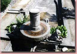 Fast immer ist es der Zufall, eine besondere Gegebenheit, der vergessene Dinge auf einmal wiederentdeckt lässt. So geschehen bei dieser so schlicht anmutenden Tischplatte, die auf der Ballustrade am Ende der Wasserachse scheinbar nur darauf wartet, dass der Ruhe suchende Besucher seine Tasche auf ihr plaziert und sich dem Blick hoch zur längst versiegten Quelle des Brunnens hingibt.